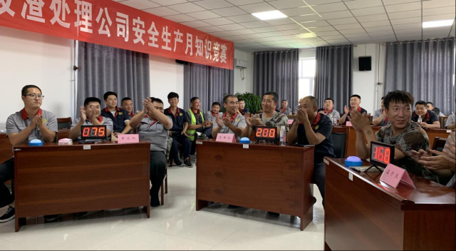 为进一步强化普及安全生产法律法规,营造良好的企业安全文化氛围,切实加强安全宣传教育工作,提高我公司安全防范意识。正值全国第21个安全生产月之际,6月27日中午,由榆横工业废渣处理公司安环科围绕“遵守安全生产法,当好第一责任人”主题,精心策划开展了主题安全知识竞赛活动。